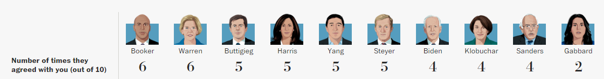1, regarding the LGBTQ issue which she got past and apologized for, and has a sterling voting record for, I wouldn't let that go unchallenged. That is an unfair criticism to me. Whether or not other people would want to forgive is a different issue, some people won't. But I think that there should be room for people to grow and evolve. Most everyone else up there aside from Sanders was against gay marriage at a time when he was advocating for gay people. Biden certainly wasn't for gay marriage in the 80s, and Warren was a Republican. I'm glad they came around, but to single Tulsi out on this issue is trash. She's much younger and made the turn at a much earlier point in life than those people, but she's smeared and made a pariah for being raised in a conservative household? Nah, that doesn't fly.